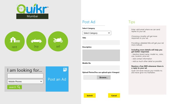 I downloaded a Quikr Application as it was more mobile than transacting through Laptop. I liked the idea of free Ads. It allows any person in need to sell their products without even paying for them. Also, the Application had features like Chat with clients, Number privacy and Photo sharing. I liked the interface of the Application as well. It is easy to use and hence time saving. Quikr also has an MSP(Maximum Selling Price) feature which is based on an algorithm and helps one to determine the exact selling price of the product in 3 parameters- Excellent, Good and Average. It indeed appealed me.