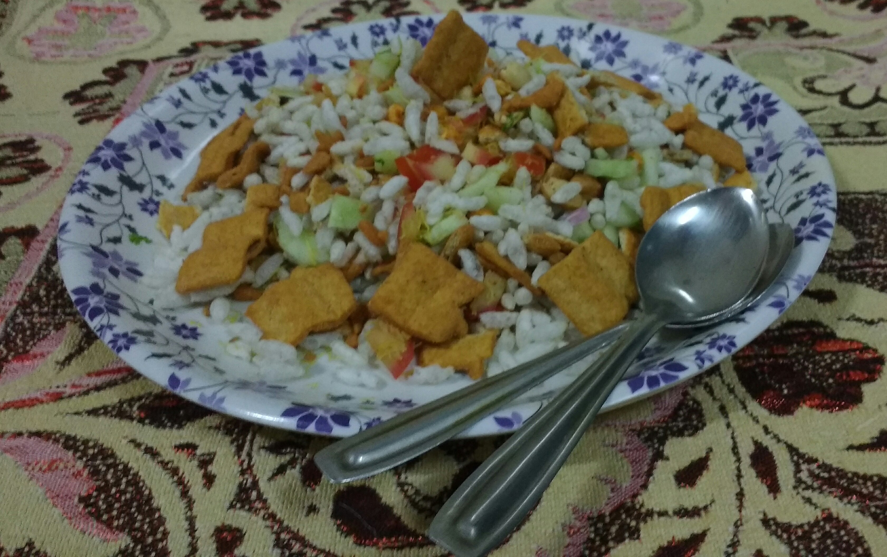 - Bhel Masala (Salt, finely chopped green chillis and chat masala) as per liking