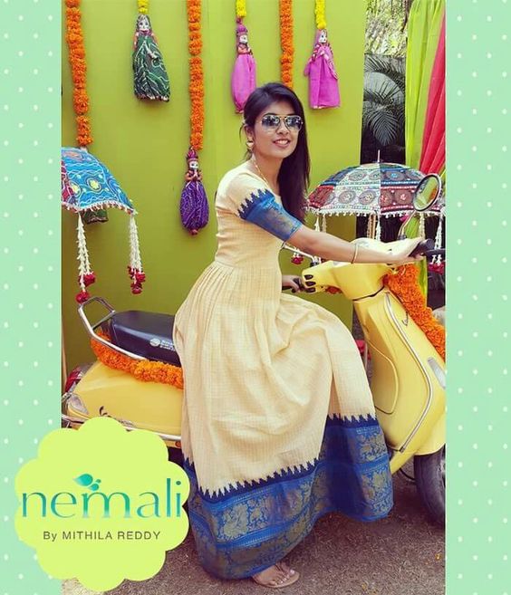 South-Indian Designs are so vivacious and bold. A long floor-length south-indian kurti with thick borders is so fresh and full of swag!