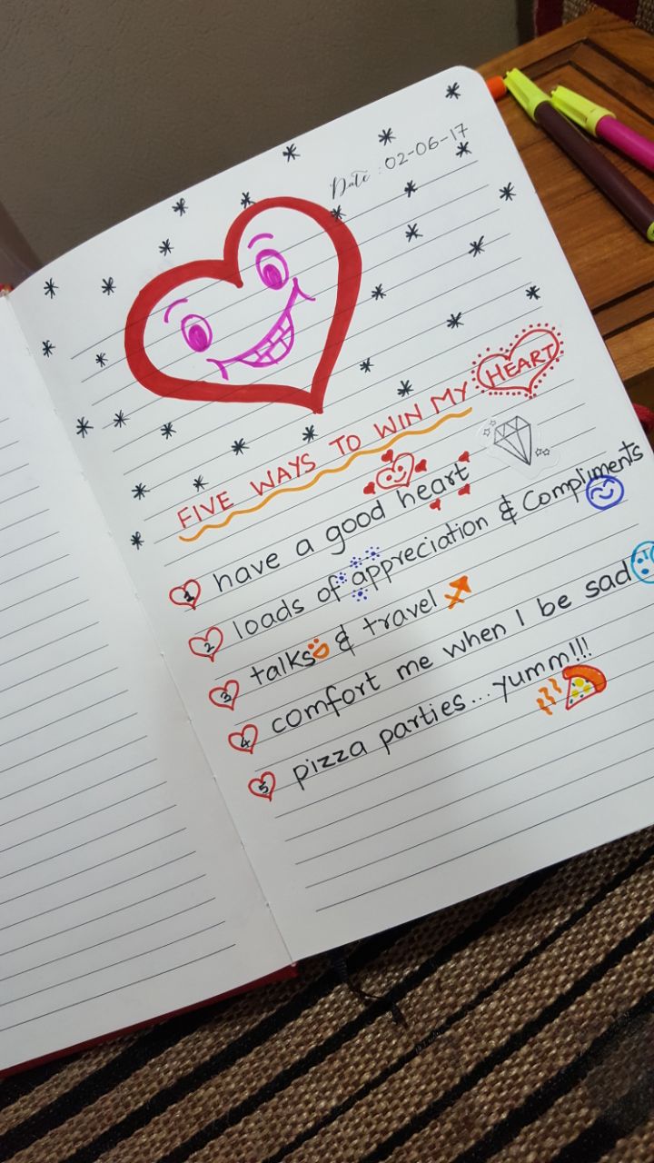 Next, I creatively wrote about the qualities I own, from alphabets A-Z exhibiting my identity. Then, I dedicated one page to list down 5 ways to win my heart, which was quirky yet sweet.