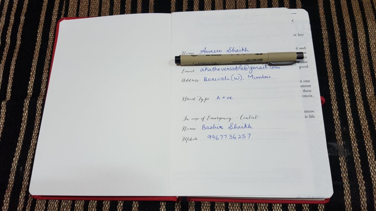 I was obviously overwhelmed by its features and instantly started using it. The first I did was to fill the Personal Memoranda. Since I am a doodling fan, I decorated one page which introduced myself, when anyone would open the diary.