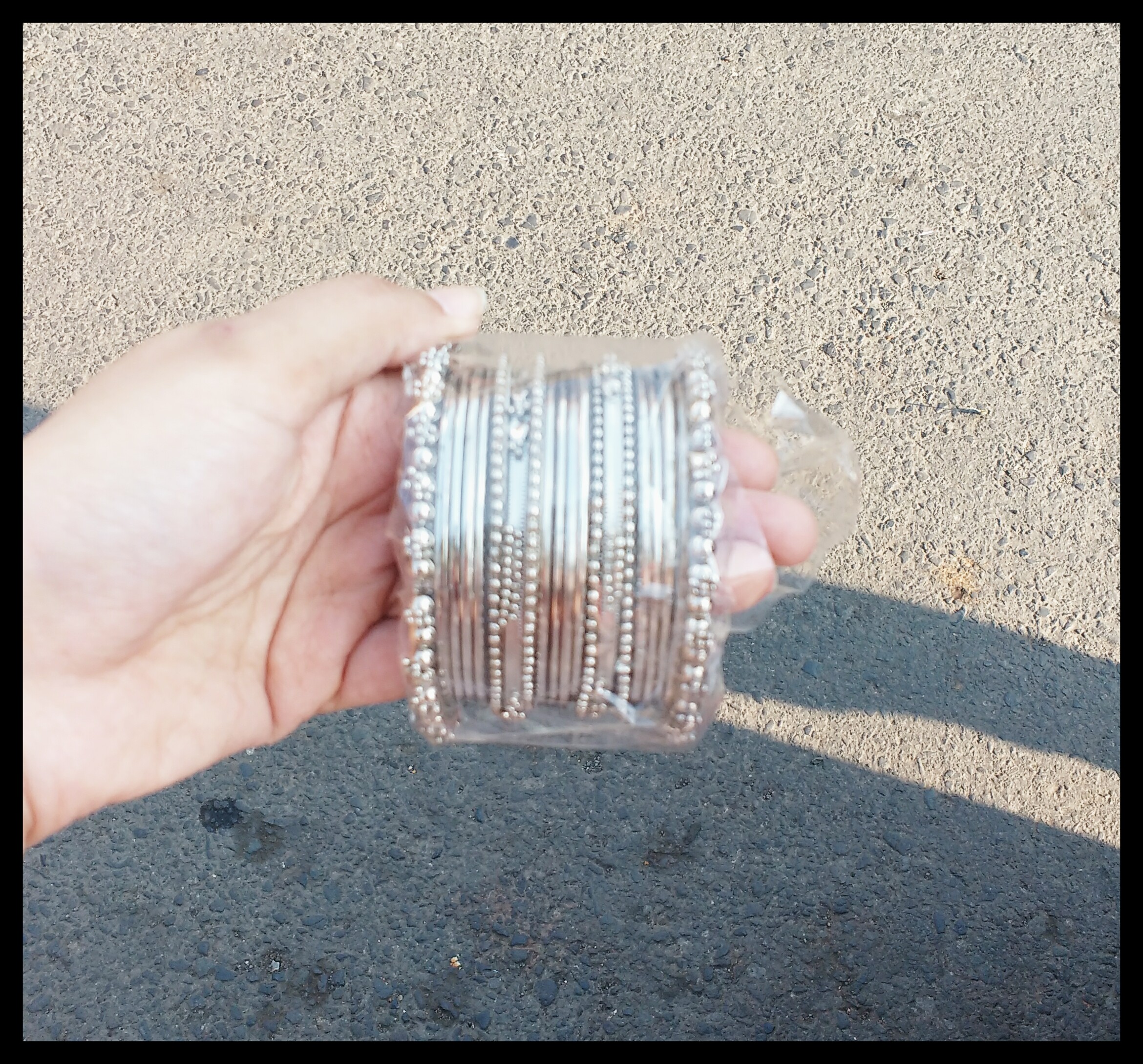 So it’s again a colorful pom-pom stuff. These typical Gujarati-styled Bangles which end with pom-pom ties look adorable and the most beautiful piece I spotted in the market.