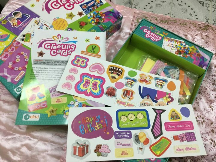 - The Greeting Cards Set is the winner here since he is a boy and hence, this set has helped him understand color patterns, glitters and drawings well. It has also helped him to make great and interesting cards for any occasion.