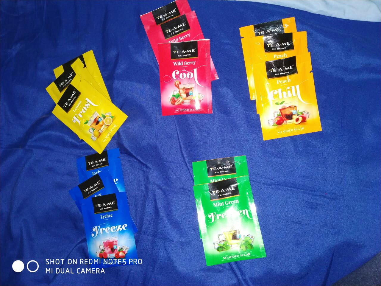 Initially, I ordered Te-a-me Ice Brews Pack of Five delicious flavors such as Lychee, Peach, Lemon, Mint Green and Wild Berry. The names are enough to tantalize one’s taste buds. The packaging is so creative and unique. I loved it the most and when I opened the pack, my entire room was brimmed with brew-y freshness. I can never forget that moment, indeed!