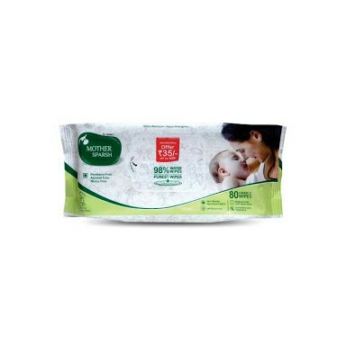 - First off, Mother Sparsh Baby Wipes are made up of 98% water and 100% biodegradable fabric, thus it is gentle on baby’s skin and moisturizes it to retain its purity.