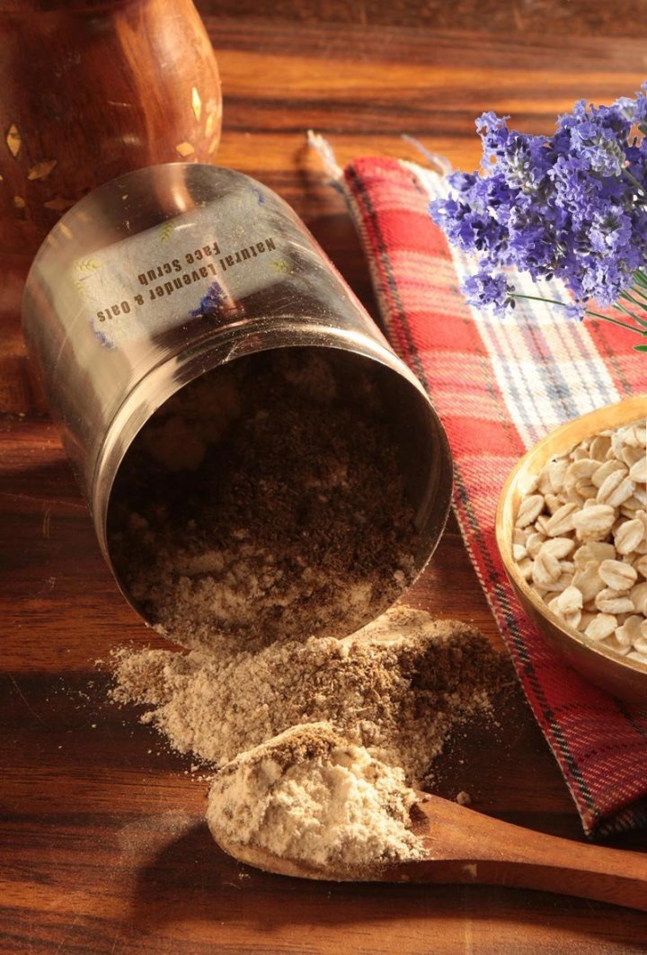 The luxurious face scrub is made with the goodness of lavender and oats. Crafted with an age old recipe this scrub helps calm and heal your skin. Organic oats have excellent exfoliating powers which leave your skin feeling active and smooth.