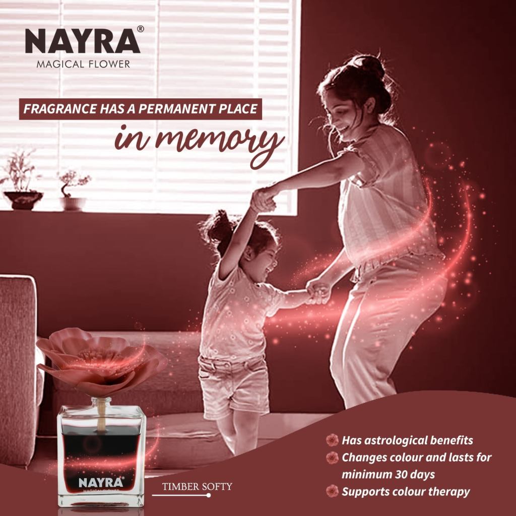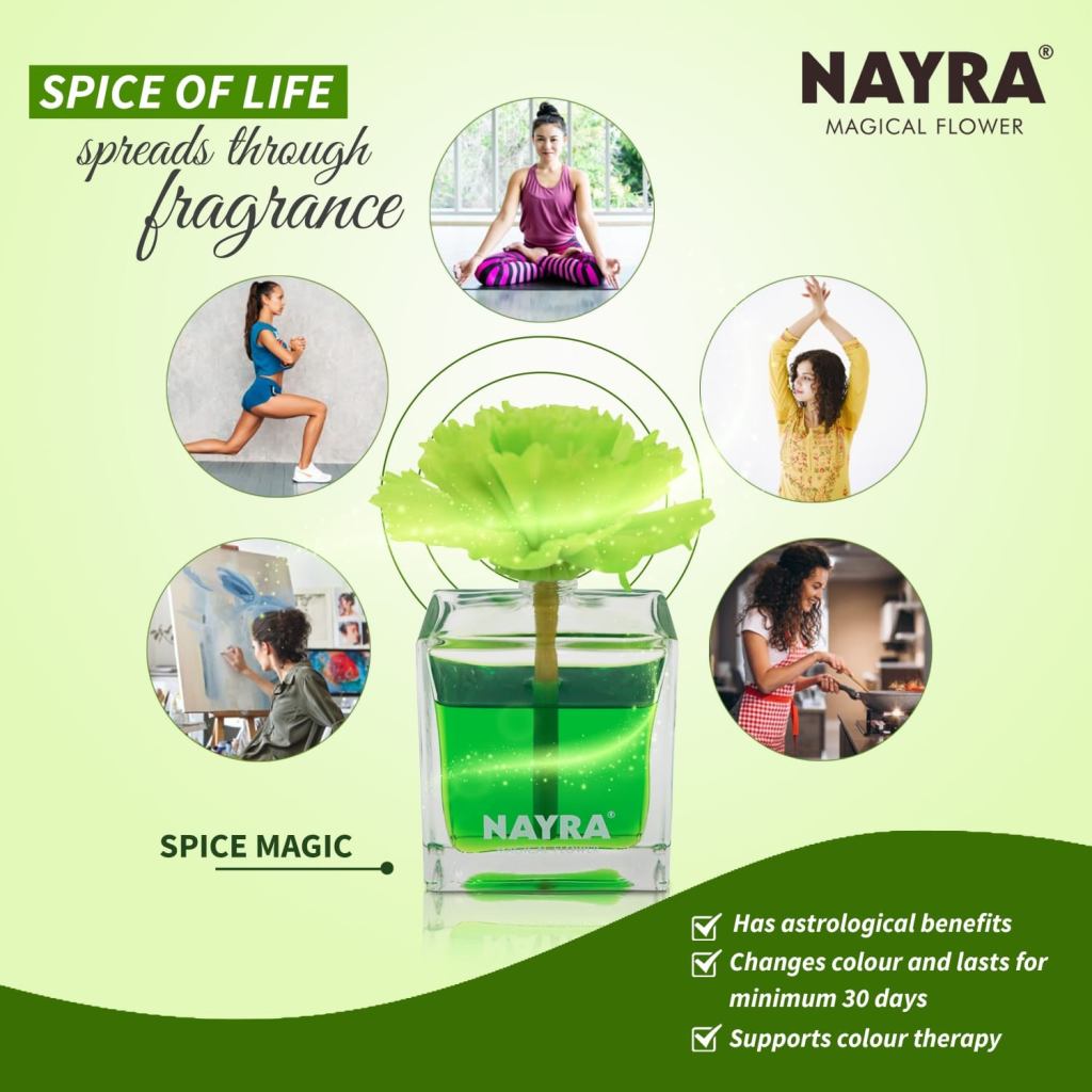 NAYRA diffuser is comprised of quality fragrance, marshalled with an exquisite handmade flower that changes colour (a.k.a. Magical Flower).It freshens the air and spreads a soothing aroma. It is absolutely suitable for home, office, show-room, hotel rooms, Banquet hall, and more as the list is endless. The best part is that it lasts for a minimum of 4 weeks. The Ideal temperature is 22-23° C and the humidity is 55-65%. It is an artefact that looks more like a decor piece that will beautify any room or place. The colour of the reed diffuser changes in 24 hours from white flower to liquid colour.